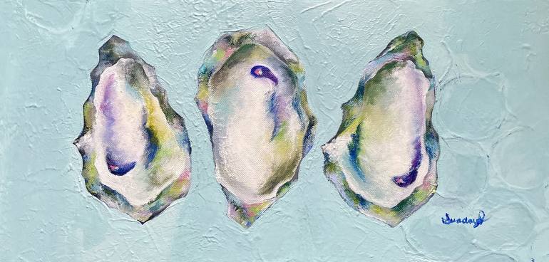 This 12x24 "Oyster Panel" painting is a beautiful addition to a home. Its bright colors, specifically the greens, blues, purples, and pinks, create a vibrant and joyful mood. I was inspired by the Wellfleet oysters my family and I enjoy when we go to dinner. The painting is inspired by the oysters' ...