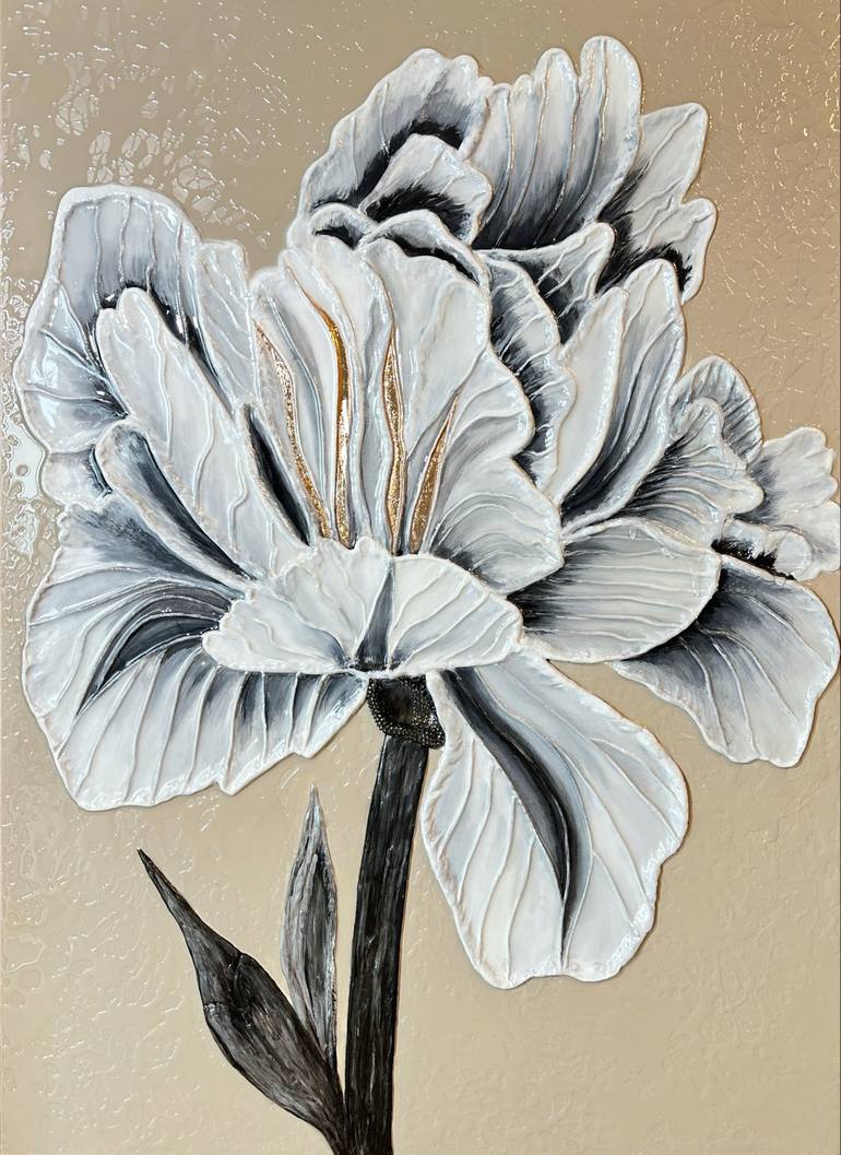 PAINTING "TEMPTATION" 3D original painting | Completely handmade This flower seems to be reminiscent of "Temptation" thanks to its delicate colors and lines and its core that invites you into embrace or adventure. Size: 30x43.3 in (77 X 110 cm) Materials: artboard, acrylic, texture paste, jewel...