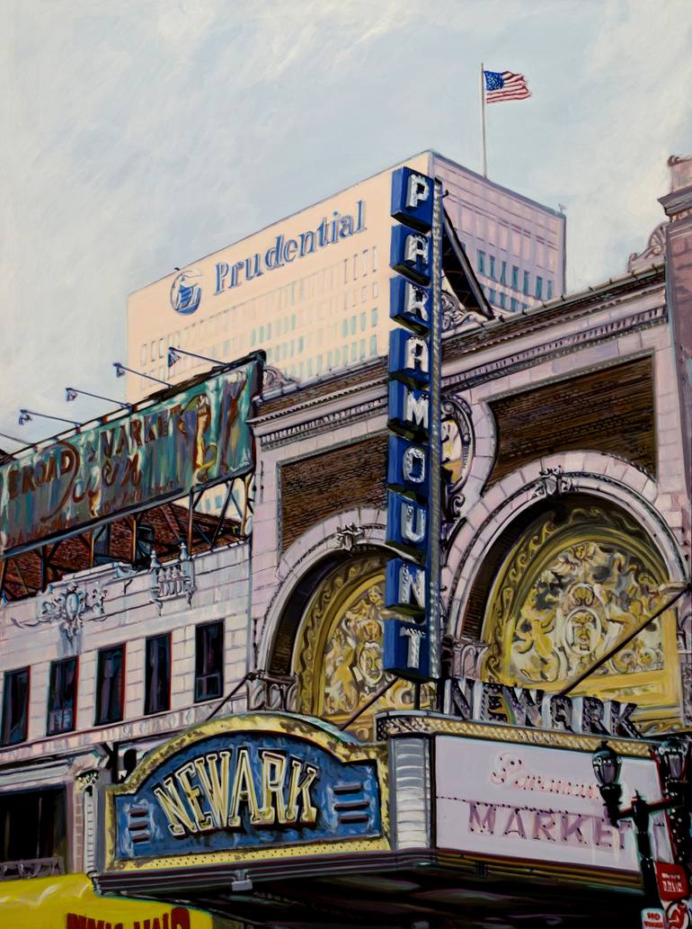 An exhibition of artwork inspired by Newark's theatre history inspired 5 paintings. Entering condemned sites—buildings marked with the kiss of death—artists created works to preserve the historic significance and their resonant memory of what remains. I presented the paintings, acrylic on 3" cra...