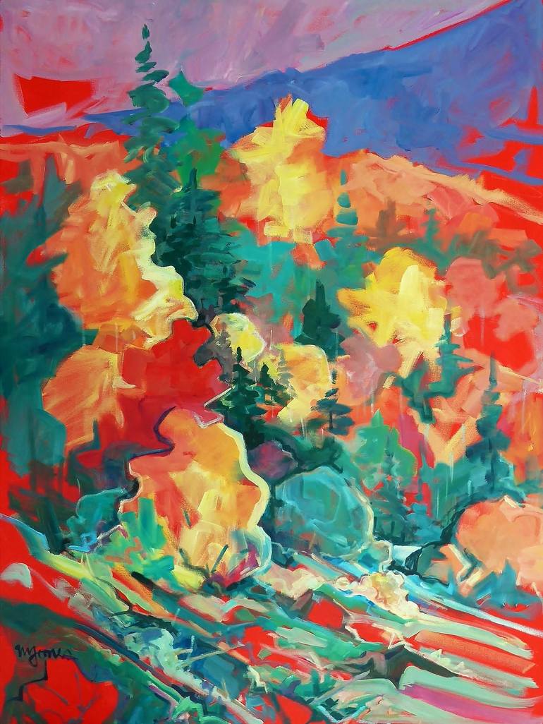 "PARK CREEK VALLEY" is an original 30 x 40" acrylic painting by Micheal W. Jones. This lovely impressionist painting was created from sketches made on location in southwest Colorado using the finest pigments on acid-free stretched canvas, and will be shipped directly to your door from the artist's s...