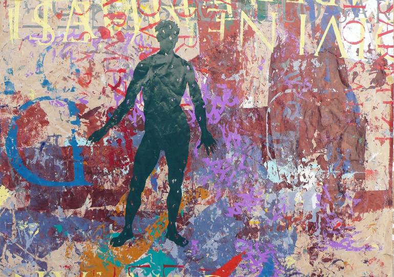 The work has a frame and passepartout. The complexives dimensions are: 62 cm x 82 cm x 3 cm UNICUM piece The concept is the TIME as absolute winner in a WORLD IN COLORS. Is a composition with icon of The Gods of Abstraction and Sciences. The expression of the icon of the human body represents th...