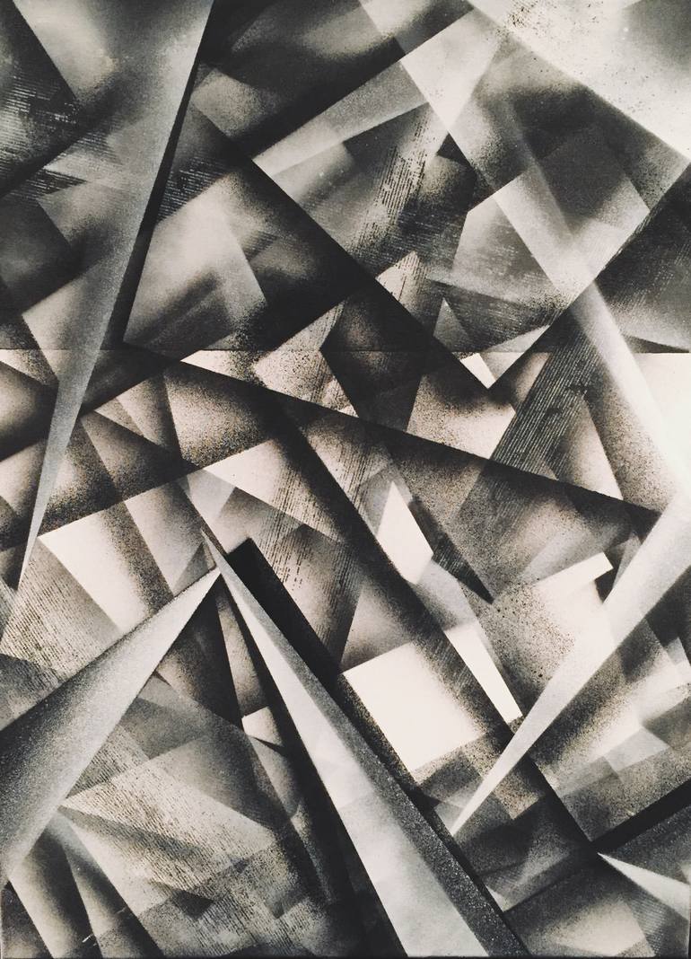 ‘White Noise’ Spray paint on Canvas, 80x60cm First painting of the 'White Noise' series mixing analogue and digital forms. Original Artwork not for sale. Limted edition prints available exclusively via Saatchi Art.