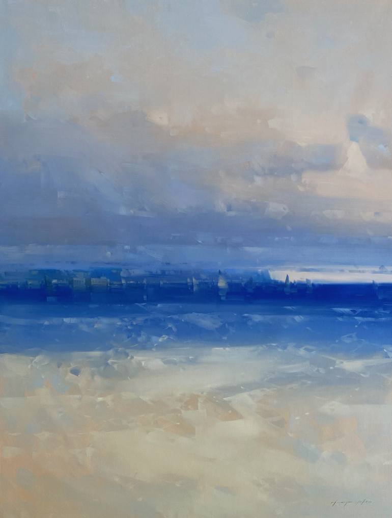 Artist: Vahe Yeremyan Work: Original Oil Painting, Handmade Artwork, One of a Kind Medium: Oil on Canvas Year: 2022 Style: Impressionism, Subject: Pacific Ocean, Size: 56" x 41" x 1'' inch, 142x104x3 cm, Unframed, Stretched on Wooden Bar, Gallery Wrapped, Ready to Hang. Yeremyan is an Americ...