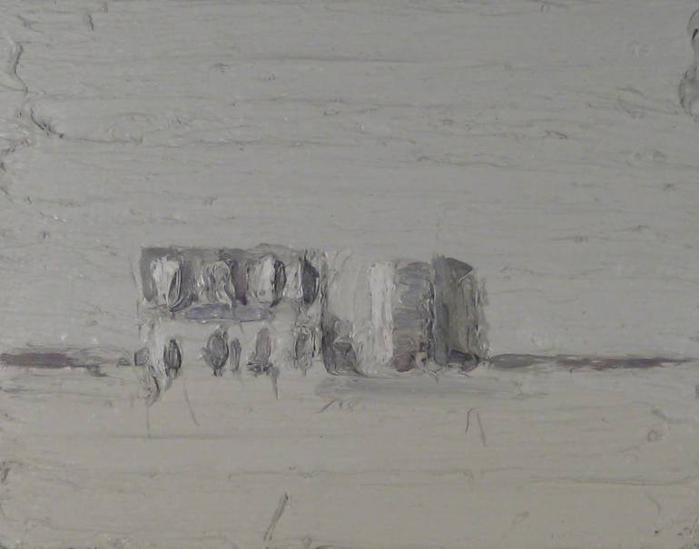 An observational painting of disposable packaging propped up against a wall in natural light. The paint is very thick, the tones reduced and the composition minimal.