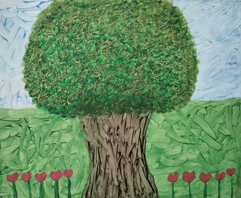 I love trees and this was my first painting since I began painting again in life. Best it be a tree! I also love flowers and nature in general. This is what came out of my heart.