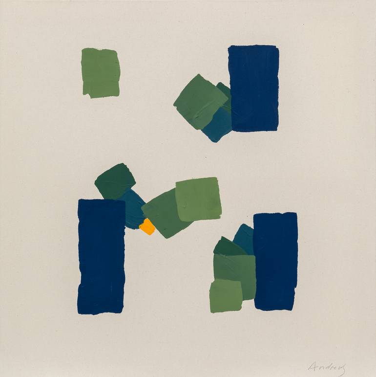 Annabel Andrews was born in the Isle of Wight in 1940 now lives and works in El Escorial near Madrid Spain, where the colour, light and volumes of the mountains inspire her work. As also her friendship with the late Spanish artists Pablo Palazuelo and Jose Guerrero. By preparing her own canvases with home made casein glue base and zinc white the work is light and luminous ready for applying acrylic colours.