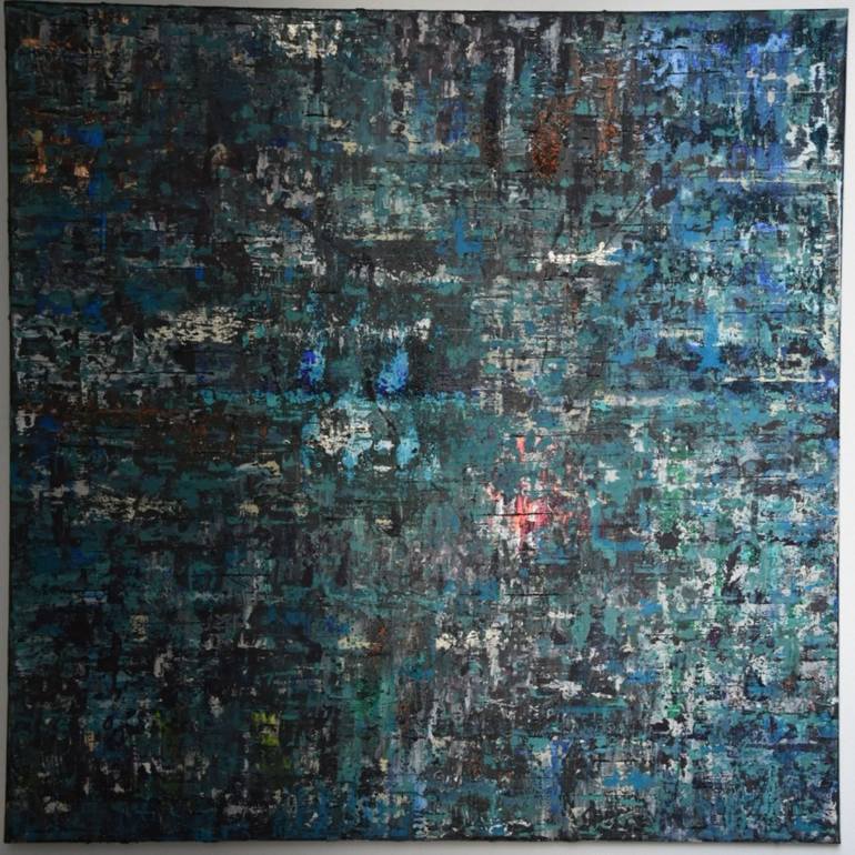 Sea colors palette Unique original handmade painting applied in multiple layers. inspired by the rough sea. With various elements incorporated such as crushed stone. Mainly applied with palette knife. Painted with acrylic paint on a linen canvas. Canvas is made of high quality linen, mounted on a th...