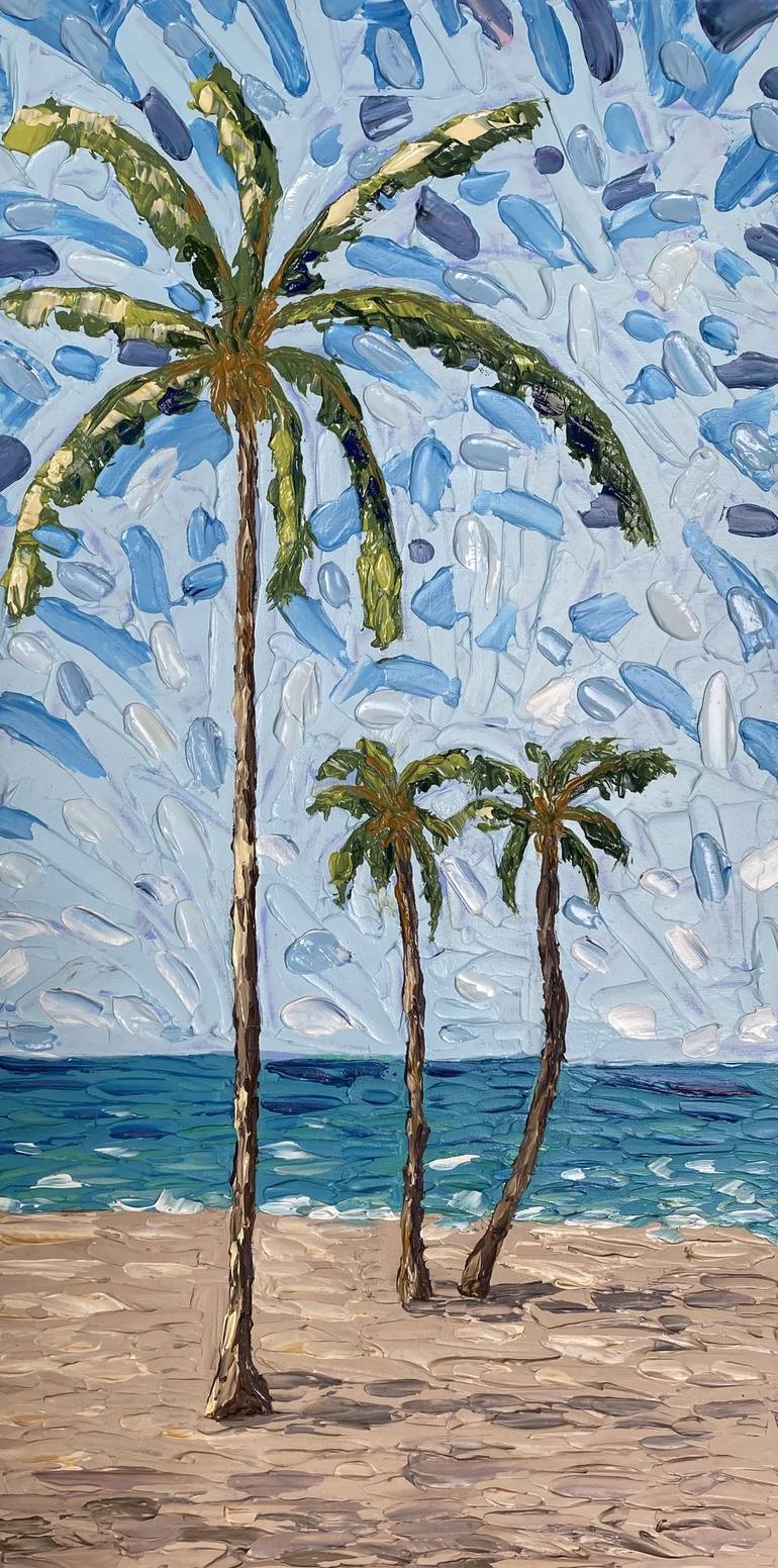 Inspired by summer days and palm trees. Does it remind you of latest holiday or home beach? Whatever is the answer these painting will bring joy to your home. Gallery quality Premium, environmentally friendly, Cotton Duck canvas wrapped around the wooden frame, painted around the edges to complimen...