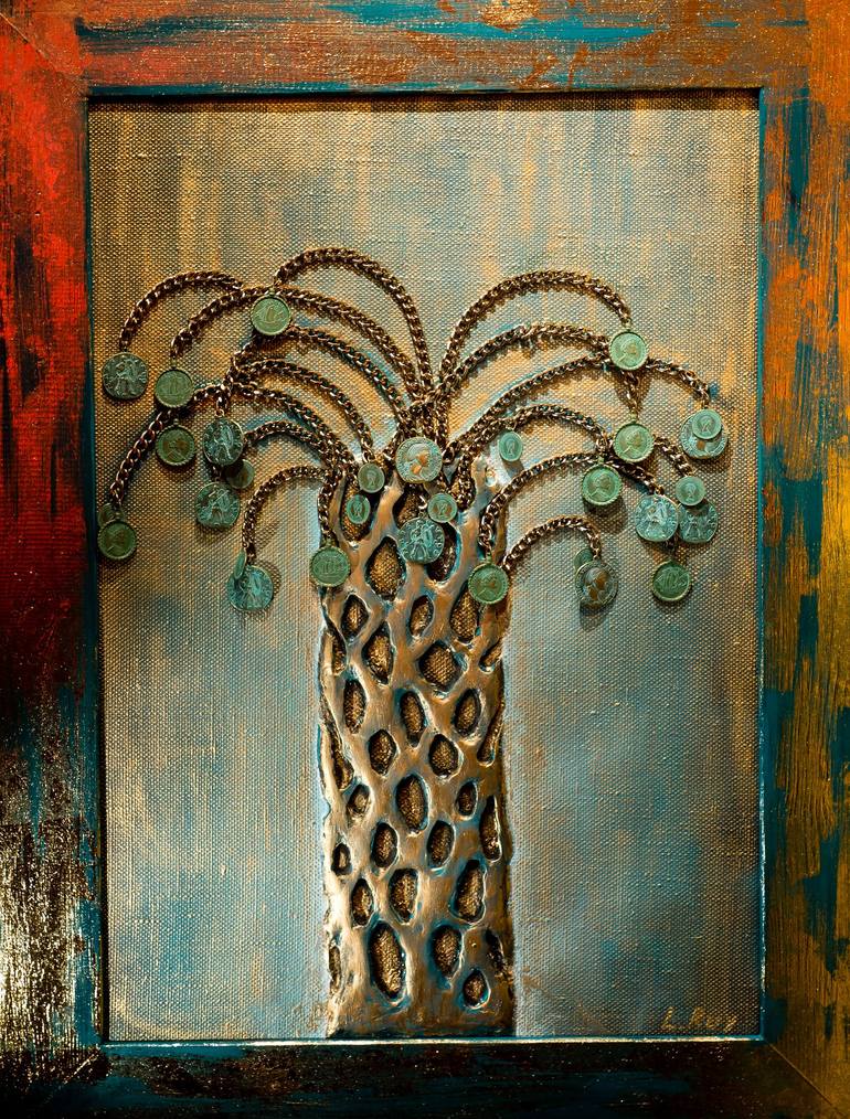 "Palm of Prosperity" is more than a sculptural painting. It is a visual invocation of abundance, merging the elemental strength of nature with the focused energy of human aspiration. Within the textured trunk pulses the breath of the earth; within the arching branches — the unfolding journey of achi...