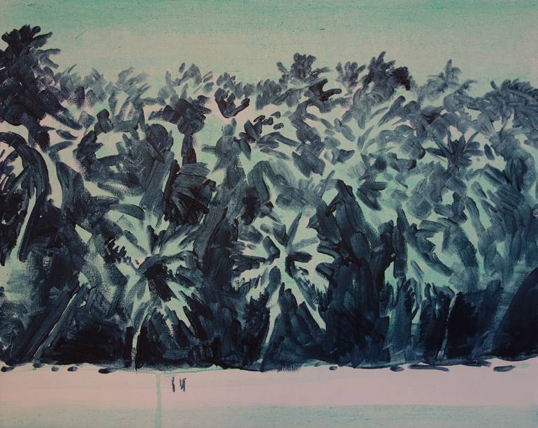 In his work Peter researches fragile protection, captured in synonyms like tents, jackets, and treehouses. Things that protect us to a certain extend only. He painted men in ice bear suits, endearing and protective, but dangerous at the same time. Peter’s paintings moved towards landscapes that express longing for a return to nature. His works got characterized by escapism. The tendency to flee from everyday reality, expressed in painting the supernatural and mysterious. Sub-tropical regions appear in his work. His works glorify nature, and he developed an appreciation for wilderness as the most authentic form of nature. Cabins and tents in his landscapes symbolize fragile stays. Peter paints with egg tempera that he produces himself. He applies several thin glazing layers onto the canvas. Combining this layering and the use of oil paint creates a depth that allows the viewer to enter the artwork. Born in Den Helder Peter feels connected to the seaside. Fragile dunes that protect the ones living behind it and the beach that offers a view on the horizon. Despite a sight of just 5 km the feeling of being small and part of a bigger whole often occurs to him. Painting the horizon is not just the natural border of what we see but an image of the infinite. The world goes on further behind the line that separates the earth from the sky. When the sun disappears behind it, a sense of time and impermanence arises leaving us be tempted into melancholy. Peter paints paths leading to the sea with those attracted to it, like surfers and beachcombers. It’s disturbing to see humanity depleting, polluting, and destroying the natural beauty with ever increasing speed. Where taming and controlling the landscape was a way to make it livable, our domination seems to lead to our own downfall in the form of natural disasters. In his work arising social unrest is captured by monkeys that watch us from the greenery. Astronauts in protective suits on earth. And plant carriers on the move with indoor plants looking for protection elsewhere. Peter’s dreamy landscapes, filled with detail and specks of light, inhabited with a tent, cabin, or campervan placed in the wild speaks out a humble attitude towards nature. There is no illusion that we can protect ourselves better against the forces of nature other than to relearn to live with it. Finding new ways to adapt to a landscape that is never finished.