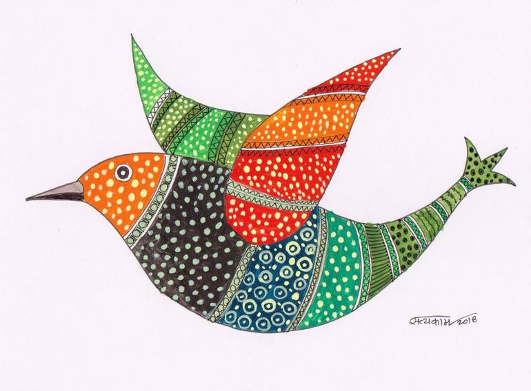 This artwork is inspired by the rural folk art from tribes of India, from state of Madhya Pradesh. The Gonds tribe folk art has now taken an international recognition. Themed around jungle, rural life, harmony between animals & humans, this art form is a celebration of simple human life.