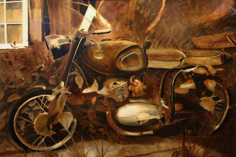 There used to be motorcycle producing in Hungary and one of the famous brand was 'Pannónia'. Pannónia also a name of terrain of Hungary. I tried to express the feeling of the lost brand.