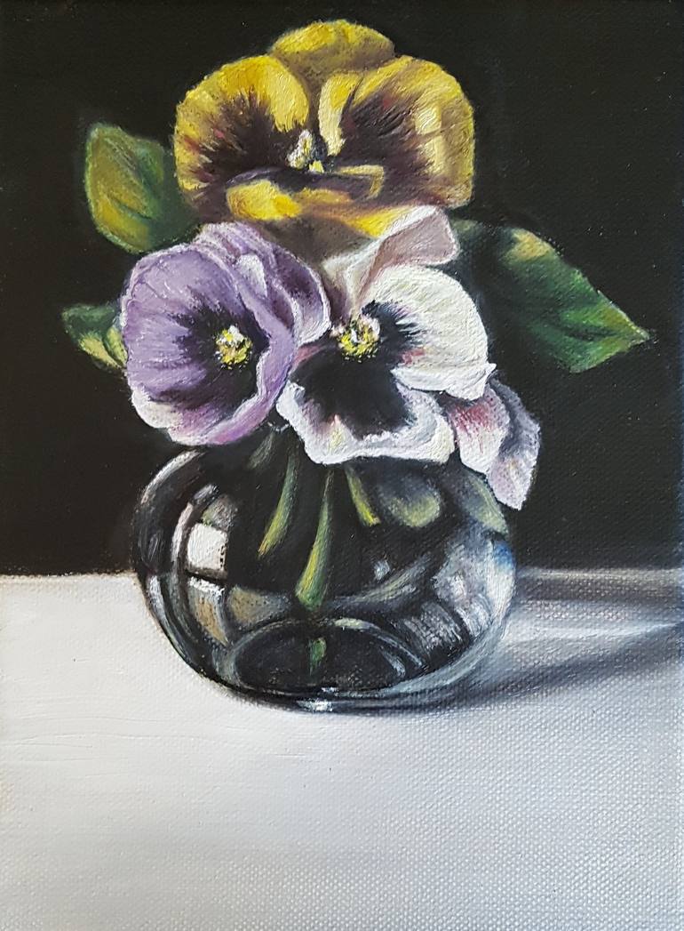 flowers are one of the beauties of nature,and I always watch them and want to paint pansies oil painting