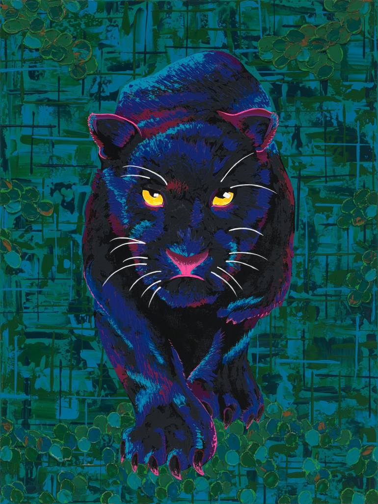 30” x 40” Heavy Body Acrylic on Canvas using both brush and palette knife. I first sketched the figure of the cat, and once I was satisfied with the composition, added my signature Abstracture style into the background. Bright colors, both realistic and fauvist, layered one after the other to reach ...