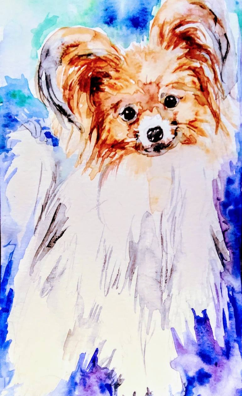 Papillon dog portrait. Original watercolor painting on paper.