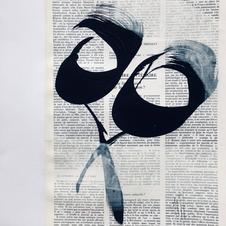 This painting is issued from a series started from a challenge for me : suggesting in a minimalist way, in black and white only, the reverie, the waiting, the desire, the impatience, the embrace, the tenderness, the caress, the fusion, the smile, the well-being ... everything that love leads us to. ...