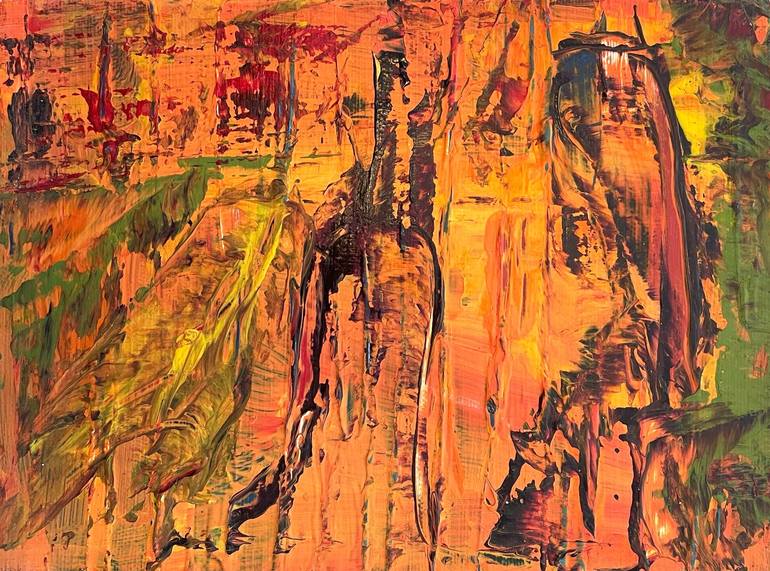 "Paris 1" is a colorful acrylic painting on canvas in a small format. It has many layers, furrows, lines - it has many stories to tell. As is Paris, the city where it originated. The main color is orange - in many different variations. The painting can be hung directly. It is signed on the back, w...