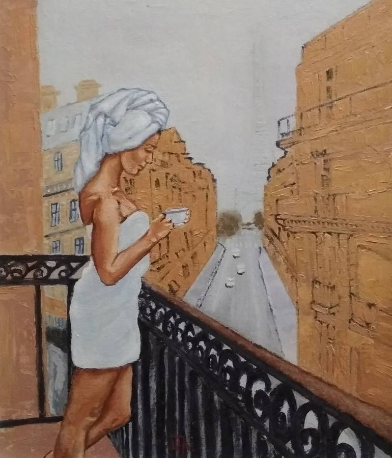 "Parisian balcony" Oil, canvas on panel, frame The size of the painting including the frame is 42.5 x 36.5 cm, without frame is 30x24 cm.