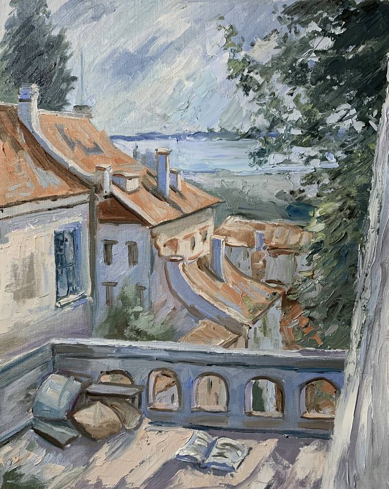 Parisian roofs. In this oil painting, I captured the serene yet lively essence of the Parisian rooftops, interplaying light and shadow with an impressionistic touch. Each stroke embodies the vibrant, historical spirit of the city, while inviting the viewer to a peaceful moment on a secluded balcony....