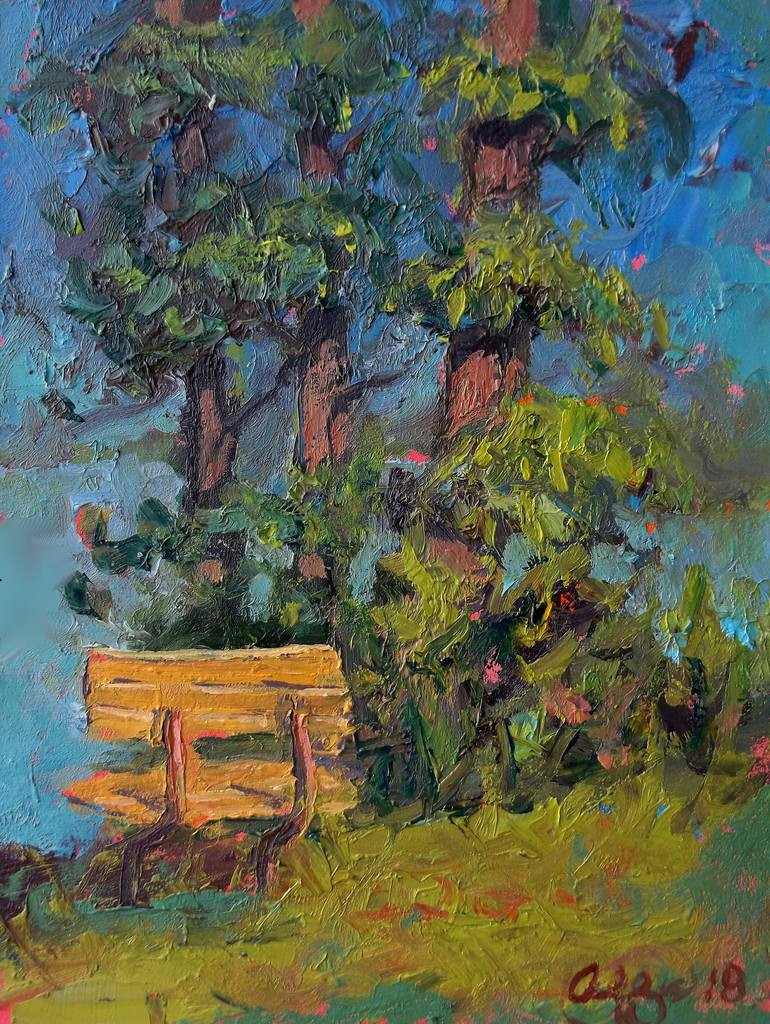 Impressionist light study of trees and park bench!