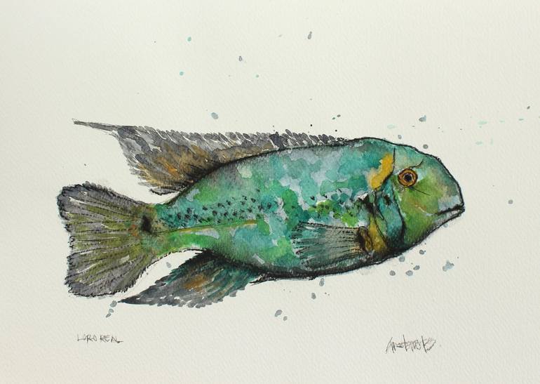Immerse yourself in the mesmerizing world beneath the waves with this captivating watercolor depiction of a Parrotfish. The vibrant colors and intricate details bring to life the unique charm and vibrancy of this marine marvel, adding a touch of aquatic allure to any art collection.
