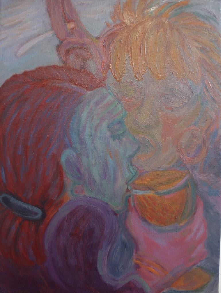 This painting depicts a scene from a party (Painting is stretched, so it's easy to hang it on a wall)