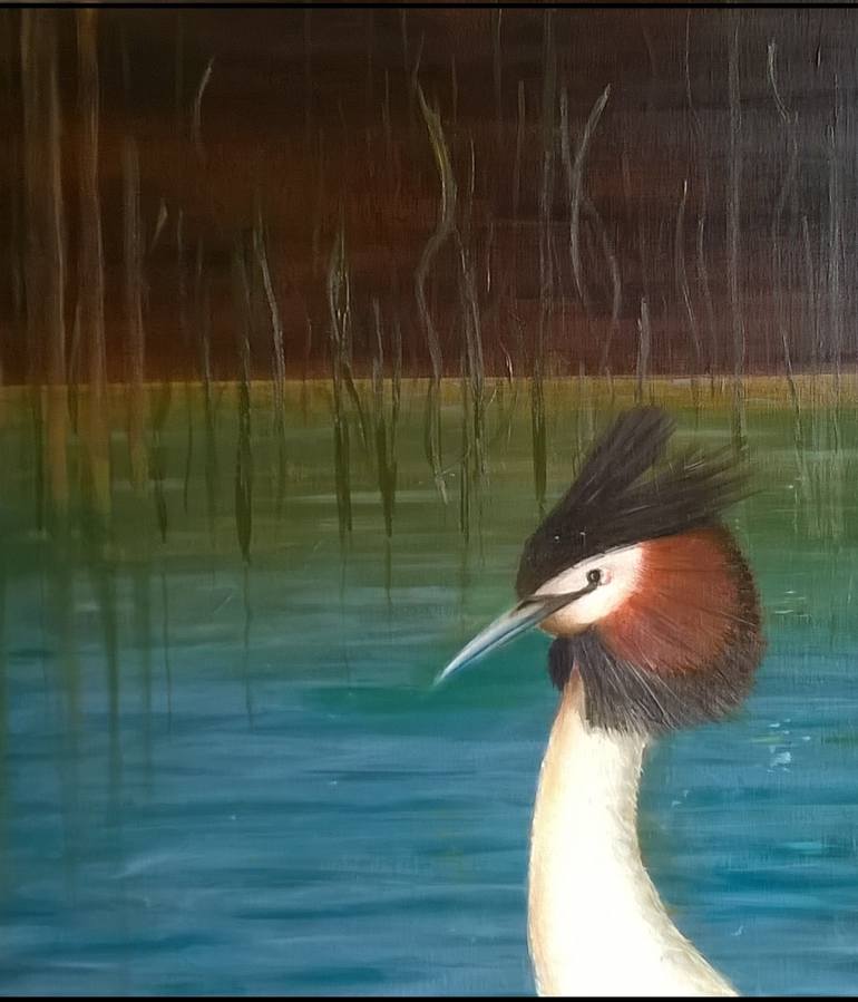 At the moment what fascinates me most is the combination of geometric and organic shapes. Maybe this is because I live in a polder: a man made, fully designed piece of land. The shapes of the fields are rectangular, the buildings are modern, not ornamented. They form a sharp contrast between the Dutch sky, the trees, lakes and wildlife. Next to this I paint whatever I like. This varies from abstract, geometric tot nature and people. I was born in the Netherlands and live in the new town of Almere. A town 7 meters below sea level. Though I followed one year of art school and a three year course in oil painting, I am largely self taught.