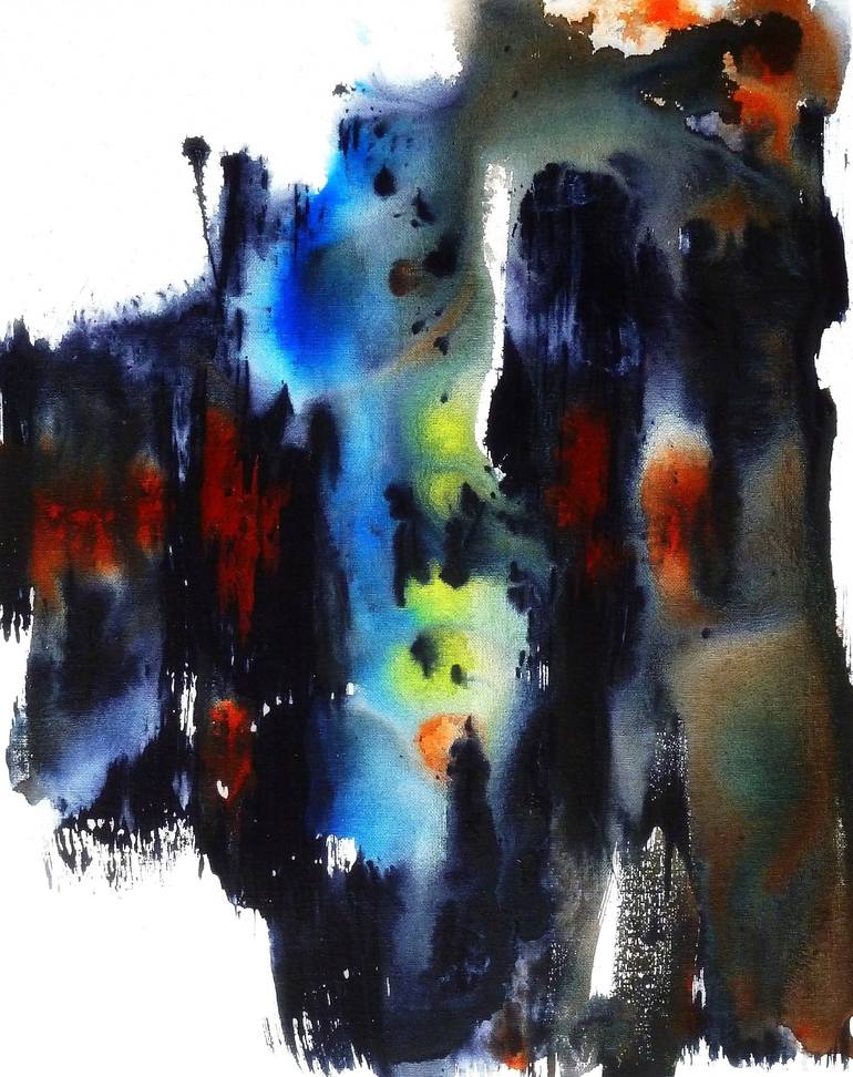 "Passing Through" is painted with acrylic paint and ink on a 16 x 20 inch canvas panel, signed on the back, sold unframed
