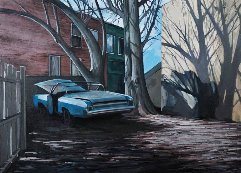 This is a quintessentially Philadelphia scene, however this yard no longer exists because a big condo building was built there. It's a remembrance.