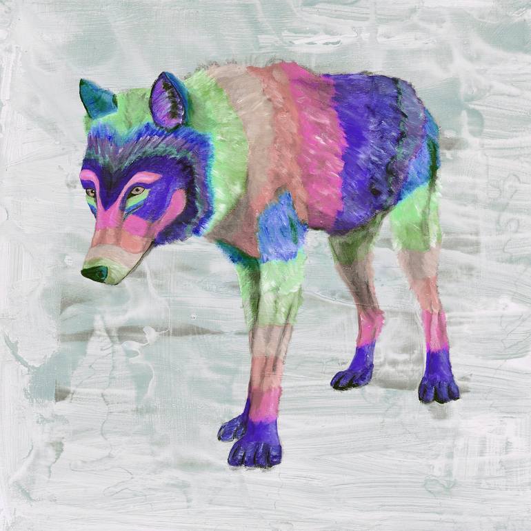 Raph Thomas is a London based artist who specialises in figurative painting. His ongoing animal series makes use of bright colours to augment the viewer's impression of the subject. He usually works with a combination of acrylic, emulsion, crackle paste and other media to form textured, distressed and sometimes dedicated appearing backgrounds that he then depicts figures traversing or immersed in. The works displayed here are digitally altered from the original paintings to have different colours and are only available as prints. He has a large collection of his unaltered work at his site: