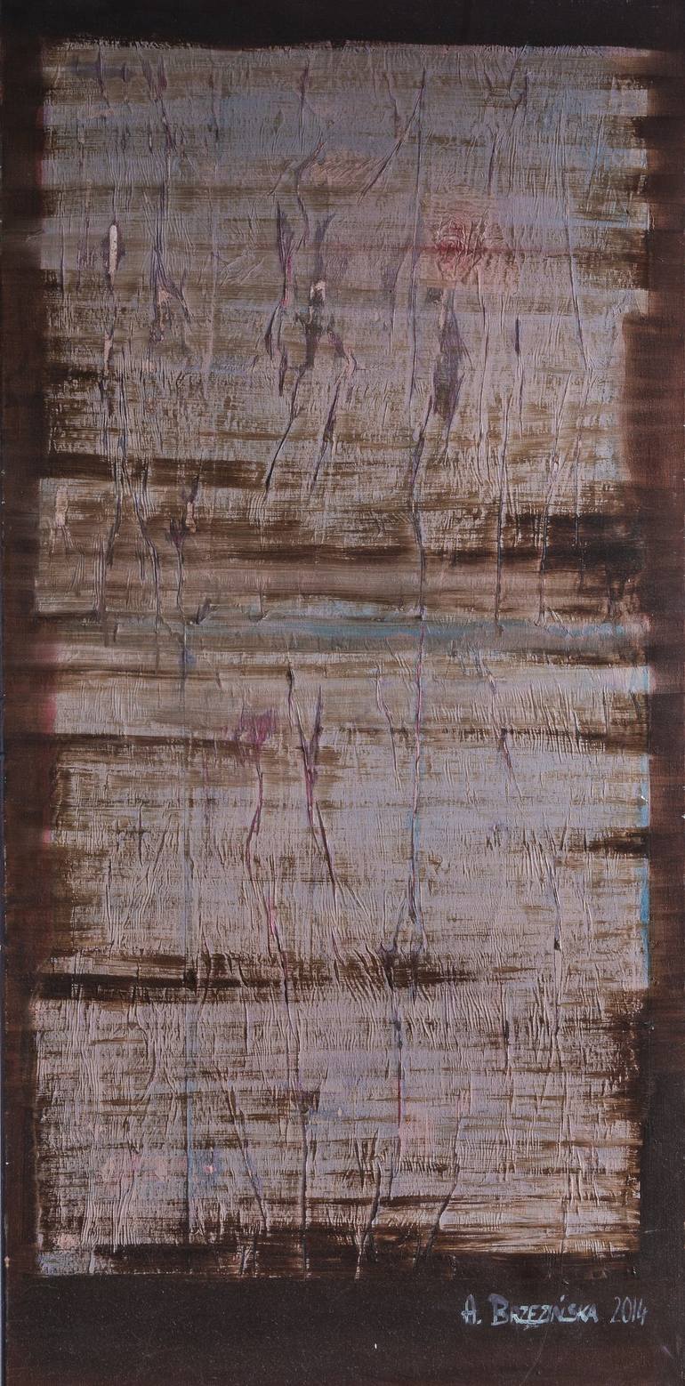 Agnieszka Brzezińska, born in 1975 in Wałbrzych, an artist, in the years 2014 - 2019 she studied at the Faculty of Painting at the Academy of Fine Arts. Eugeniusz Geppertt in Wrocław, where in 2019 she received a diploma under the guidance of Professor Janusz Merkel. In her work, the artist mainly moves in the field of abstract painting. It transforms the observed reality, but it is difficult to see the elements taken from reality in the pictures themselves. The essence of the work is not focused on their "meaning" or "understanding" but on their "feeling". Above all, it seeks to evoke the artistic experience of the viewer - delight, emotion, strength or reflection. The subject of the research, which he devotes all his attention to, is structure. Her work shows the effort of finding new forms of expression, diligence in building a multi-layered composition, devoid of shapes and figures, and speaking only in structure and color. The artist does not strive for the effect of beauty and liking viewers with fashion. He uses his own painting technique to solve real and difficult artistic problems, he is not limited to a narrow amount of obvious colors, but gives us subtle colors, new combinations of forms and colors, original and fascinating.