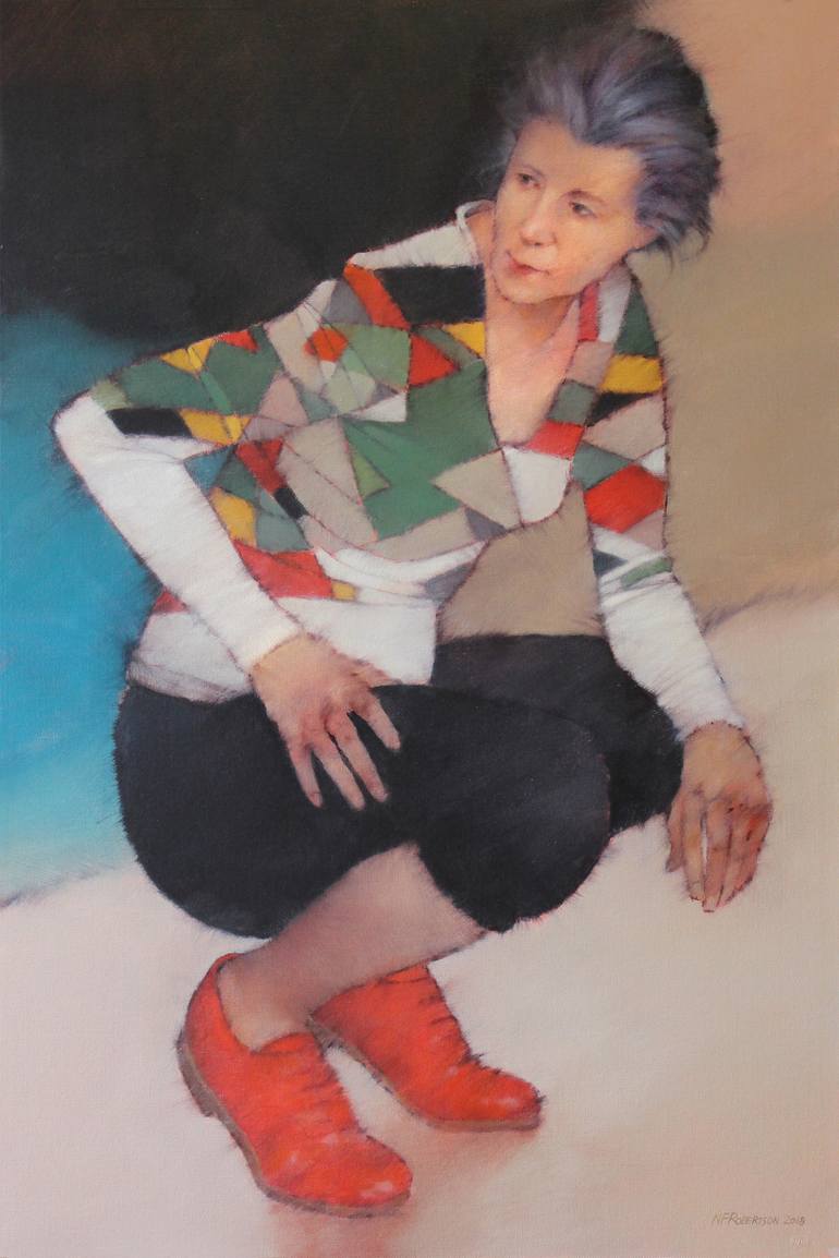 This painting is the result of observing women spilling out of a Zumba class. While most of the women were wearing trainers one woman was wearing patent red leather shoes. The actual patent red shoes used for the painting belong to my wife, the rest of the painting is from model drawings and my cons...