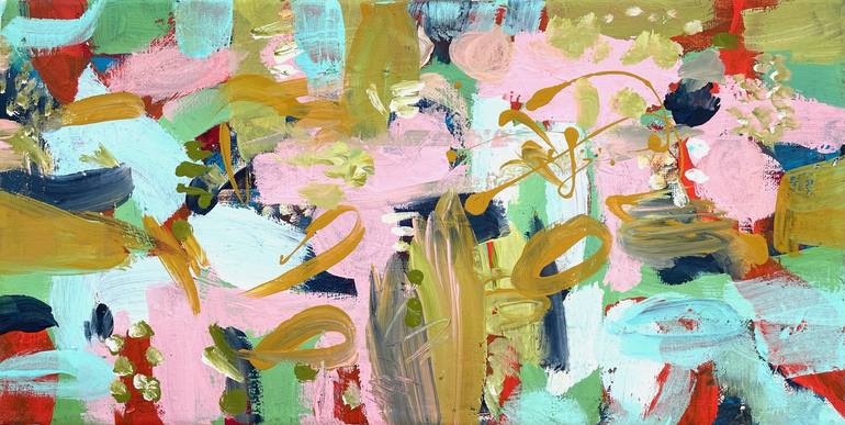 "Pathway" is a colorful and acrylic painting on canvas in landscape format. The work of art is kept in bright and friendly colors. It is full of dynamism and expresses happiness and joie de vivre. A true sunshine in every apartment! The main colors are ochre, pink, turquoise, blue and some red. . T...