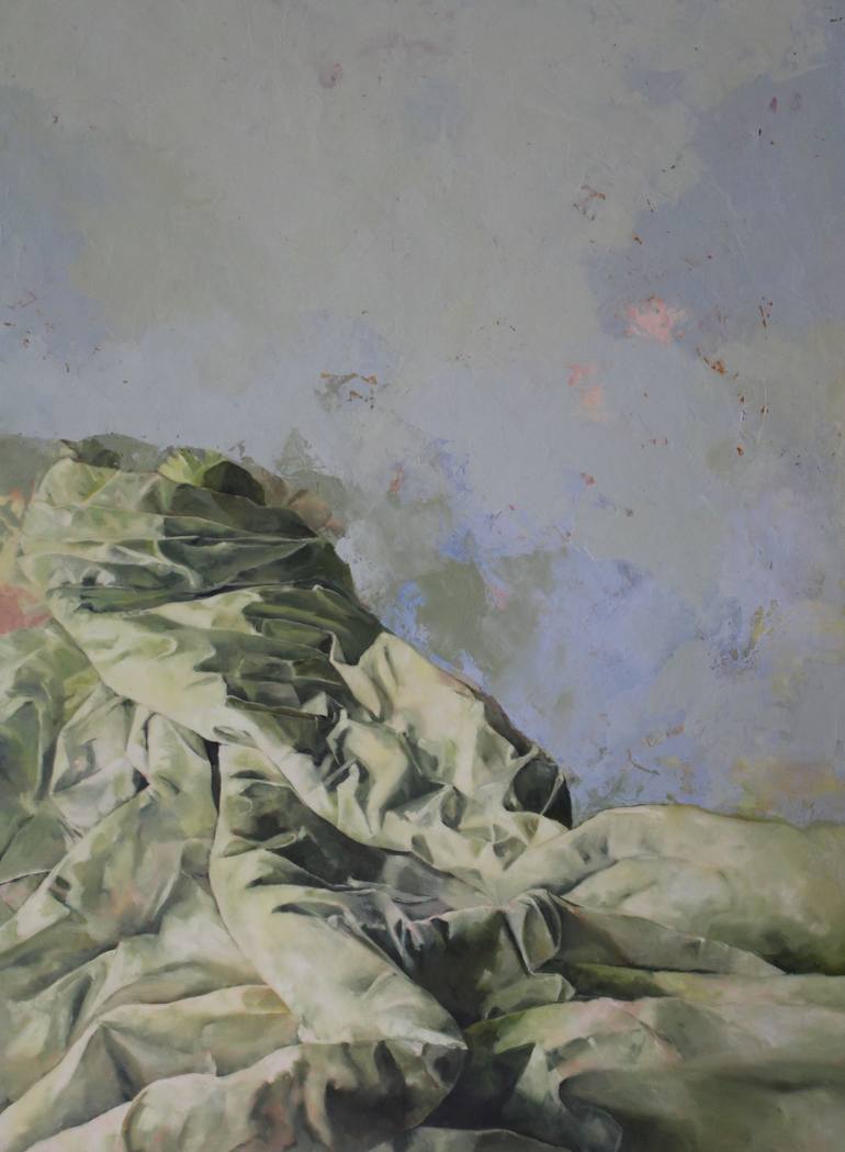 Early in the morning, still in bed, watching the sky, this is what inspired me to paint this. The medium I use is called encaustics, an very old technique that I prepare in my studio with wax and resin