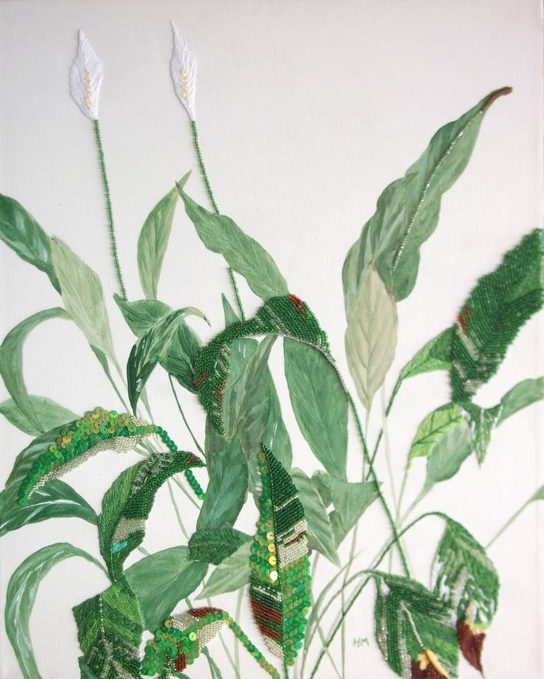 This is an original mixed media painting of a Peace Lily. It would make the perfect addition to your very own Urban Jungle. Painted on deep edge canvas with acrylic and then hand beaded and sequined on top afterwards. Signed at the bottom. It took about 200 hours to complete. The painting comes var...