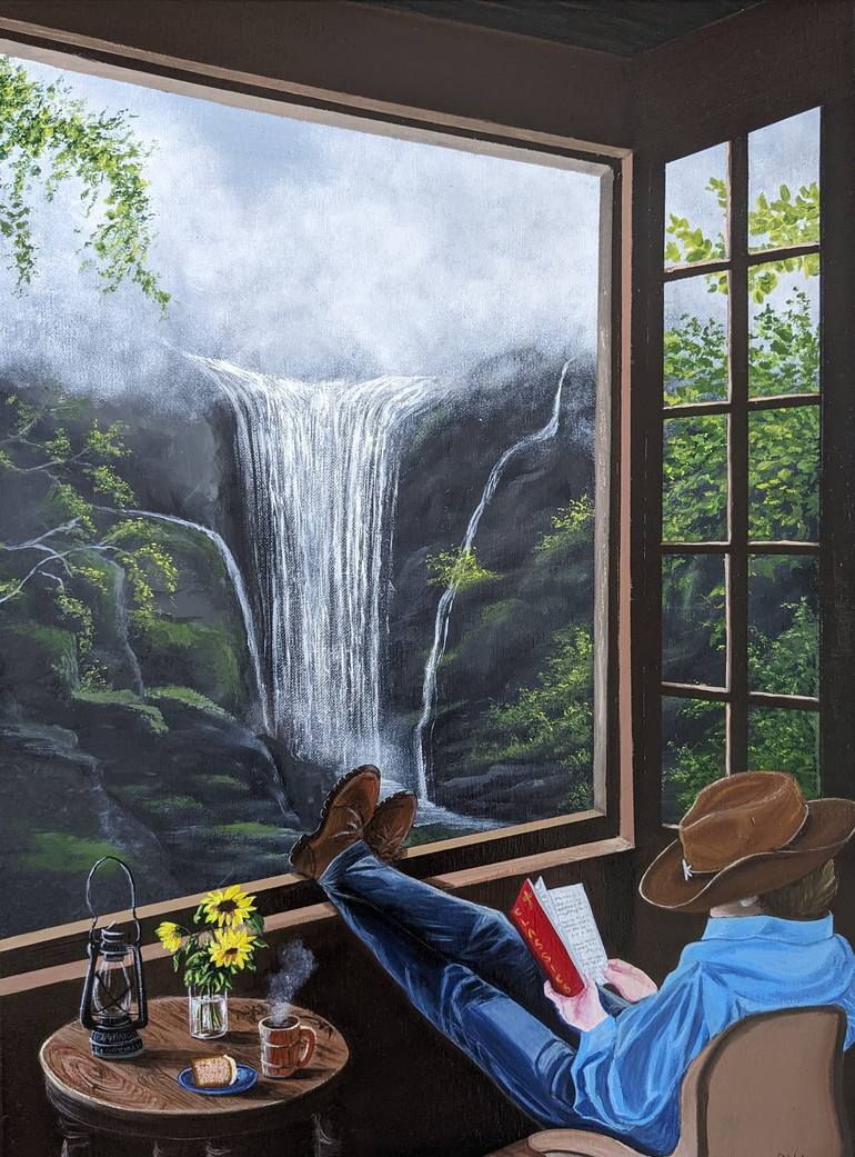 The bliss of sitting alone, feet up, reading a book, with no time constraint and in the most picturesque place possible is something that one would yearn for. In our everyday life of stress and tension, getting some time for oneself is always a blessing. I remember creating a similar kind of artwork...