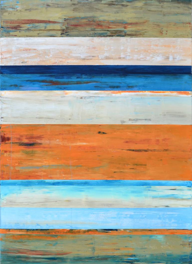 Original Blue, Orange, Grey, Beige, White and Indigo abstract painting by Leon Grossmann Abstract painting. Original abstract art. 27,5 " width x 39,4" height x 1.6" dBepth. (70 cm Breite x 100 cm Höhe x 4 cm Keilrahmenstärke) It was painted with professional Acrylic Colors. Paint on canvas. St...