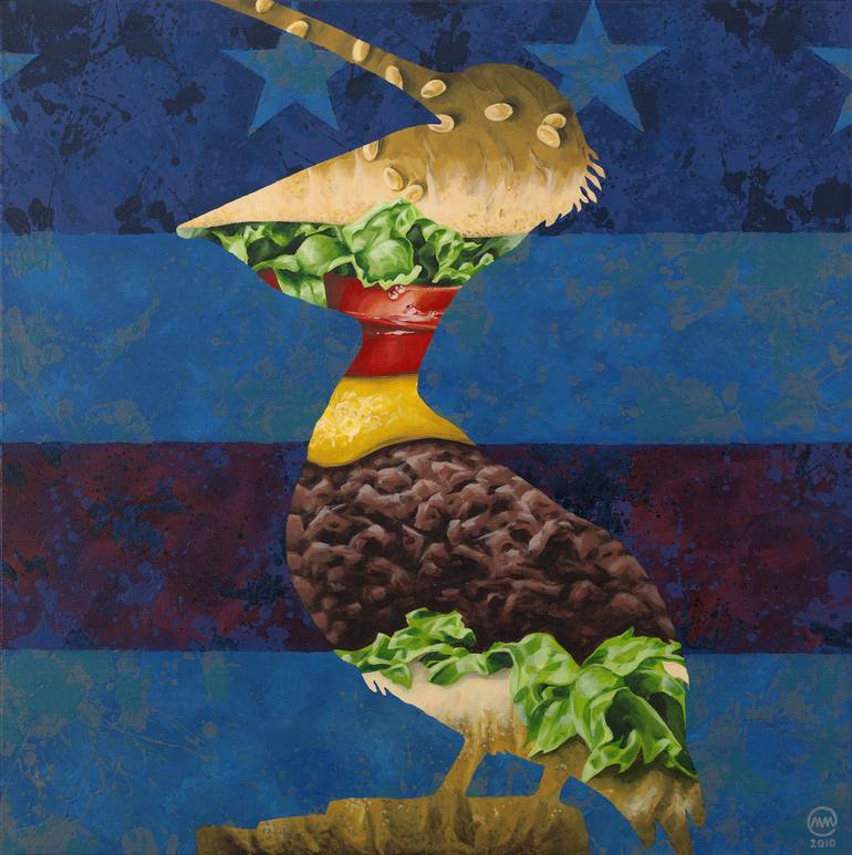 Pelican Nation A Conceptual Pop Painting by Mark Mitchell “A wonderful bird is the pelican, His mouth can hold more than his belly can...” —Dixon Lanier Merritt (1879-1972) Bigger. Better. Faster. Louder. We want it all, and we want it now. But, like the pelican, we sometimes want more than we ca...