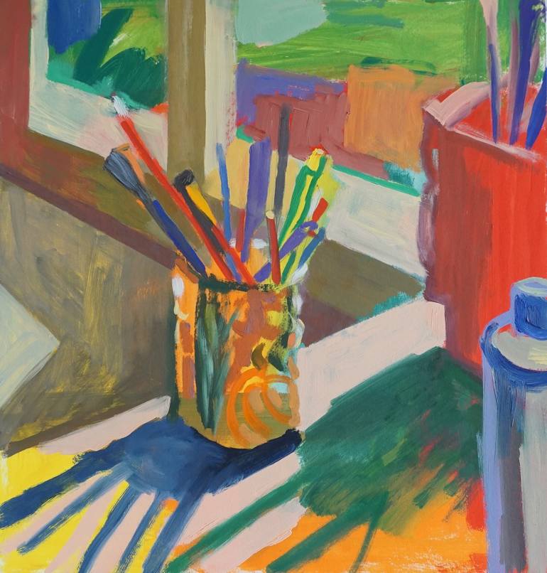 I am currently based in Texas and make large colorful oil paintings. My work centers on semi-abstract images of light on objects, interiors, and landscape spaces. I use the shapes of light as part of my geometric compositions. My intention is to capture a mood of isolation, a feeling of calm, or other worldly or psychological presence within the spaces I paint. I earned a B. F. A. in painting at Rhode Island School of Design; a B. A. in art from Simmons University, and an art teaching certificate from Central CT State University. I taught art in public schools for about ten years, then began teaching private art lessons at an artist's co-op in Illinois, and guitar lessons through my home based business, now known as Denton County Guitar Studio. I am a member of VAST, Visual arts society of TX, and VAL, Visual art league of Lewisville, and also NOAPS, the National Oil and Acrylic Painters Society. I have exhibited my paintings in over a hundred galleries, group shows and street fairs in Connecticut, Mass., New York, Wisconsin, Illinois, Michigan and most recently, in Denton and Lewisville, TX. Recent art fairs include "The Other Art Fair, Dallas", 2025, 2024, and 2021, and "Art Spectrum, Miami". My work is in several online collections here on Saatchiart. Collectors of my work reside in PA, OK, CA, MD, NY, WA, NC, MD, MA, IL, RI, WI, MI, FL, CO, TX, Sweden, AU, New Zealand, the UK, Germany, Switzerland, Canada, and South Korea. Public collections include Wausau Hospital in Wausau, WI, and Southern CT State U. , in Connecticut. My work is often on view at the MCL Grand Theater Gallery in Lewisville, TX, and at the Patterson-Appleton Gallery in Denton, TX.