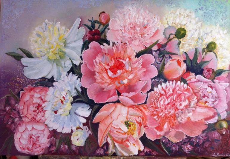 This picture is painted to order Bouquet of Peonies.This large painting is painted in oil on canvas. . Written with a brush. THIS picture will suit any interior. The sides of the painting are painted. Great gift for woman. The picture will be sent in a roll. if you want to order the ...
