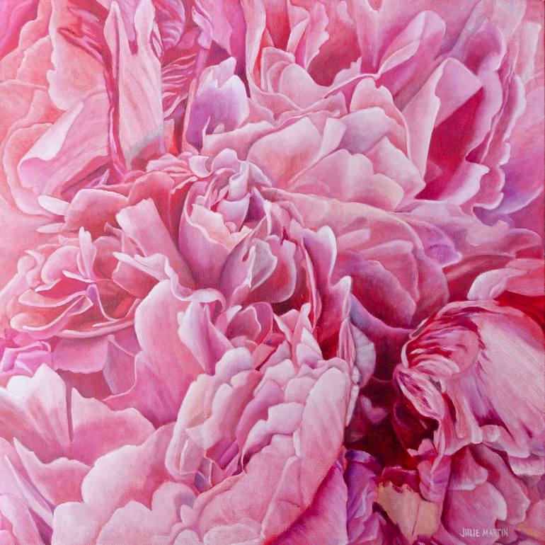 I look forward to the peony season every year; it only lasts about a month, at most. In temperate climates such as Oregon, one can see a large variety of these beautiful flowers. This particular painting was the result of the peony season a couple of years back.