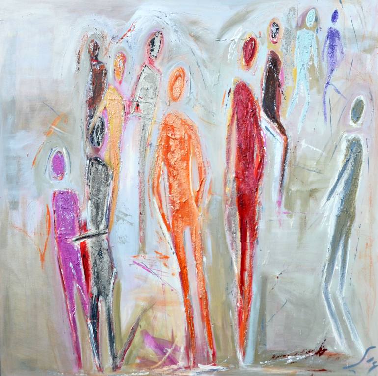 SU-ART Originally from Hamburg, Susan Sieg has been working as a freelance artist since 2004. She works with large formats, expressive colors, and materials that give strong expression to her work. Sieg‘s signature style is found within her abstract paintings of Menschen (People) as she portrays the different relations and interatctions between them. The viewer is free from predefined interpretations and is left room for imagination. "My images are to invite the viewer to think about the situations in which people find themselves in throughout life. The eye is brought to attention, detecting the proximity and distance, communication, friendship or separation, that is interpreted on the canvas ".