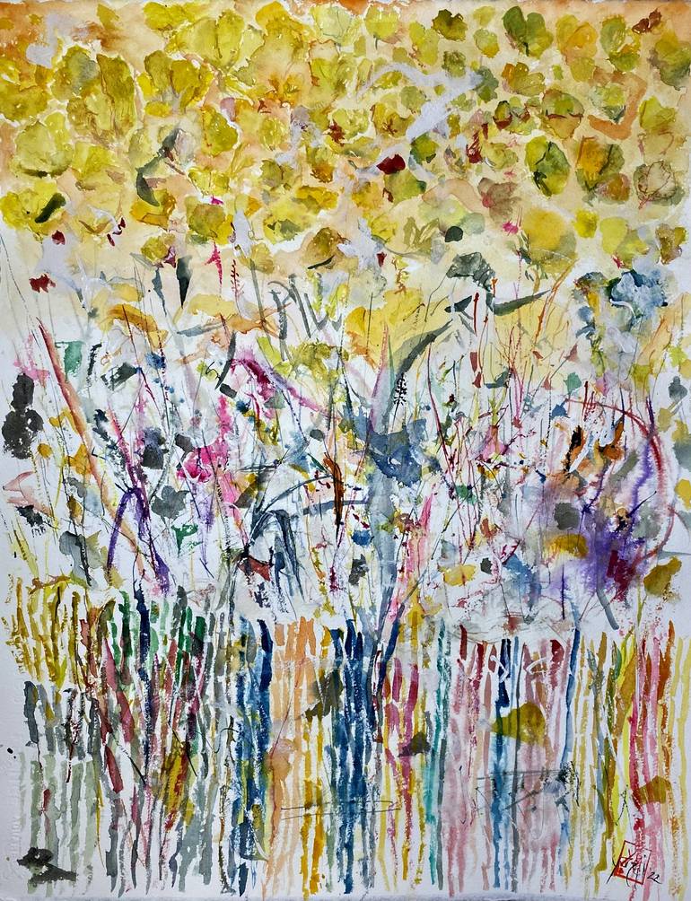 The memory of a field of flowers resurfaces, in the summer, a race among the wildflowers. And a bit of melancholy transpires among the colors of the sun. Original Abstract Watercolor on fine art watercolor paper Arche 300 g /m2, fine grain, cold pressed, 100% cotton. Format 40×50 cm. Extrafine water...