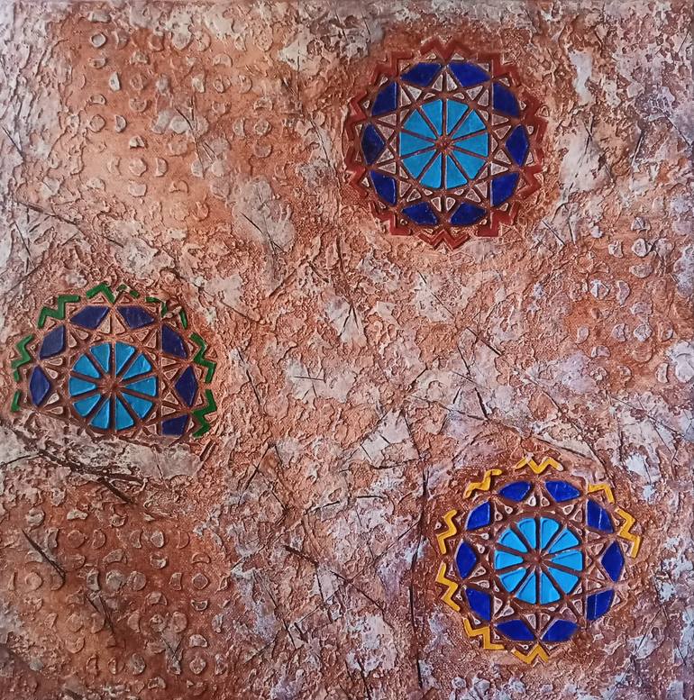 In this work I was inspired by my interest in ancient civilizations and their aesthetic and artistic expressions. So I gave space to suggestions that recreate with mixed media techniques an imaginary archaeological find and bas-relief decorations on a wall. In particular, in this case the decoration...