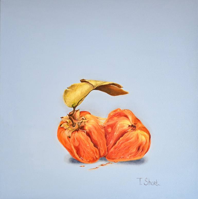 TORN PERSIMMON. minimalism. realism. oil. canvas. size 40x40 cm