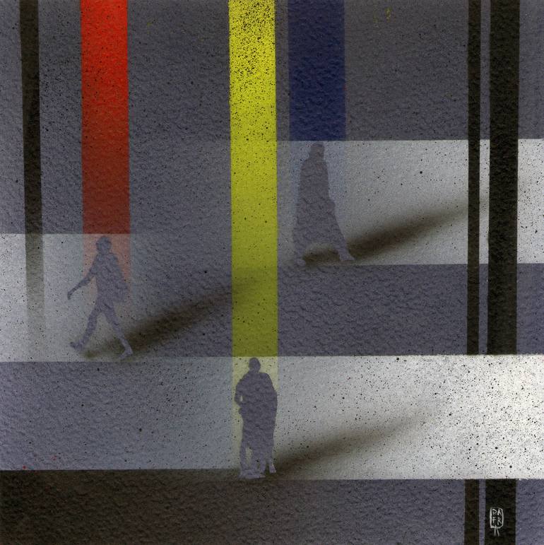 The people in the square, along the streets of the center or waiting at a bus stop, make me curious. I played a game ... I imagined the soul of each one and their color. I worked on paper with acrylic paintbrush and airbrush.