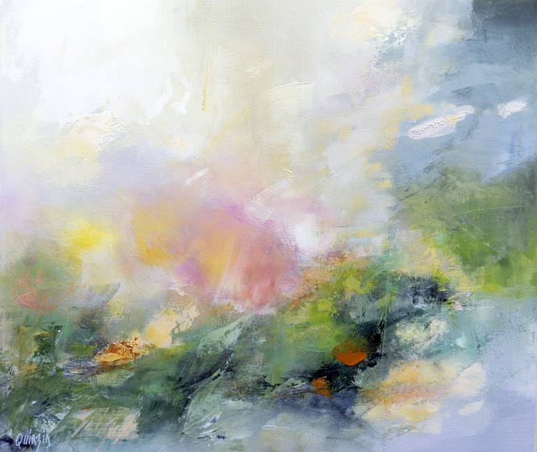 My art is intended for living spaces and the people who actually live in them. Here you can discover my canvas, halfway between abstract and figurative. I always use mixed media (collage, paint, ink, pastels...). I wish my art will enter your home, settle in your sitting room, move into your kitchen and surprise you at the corner of a corridor. I wish it will take you away without leaving your couch, make you dream sitting before your coffee cup, and smile at lunch time. My artistic affinities and tastes are various and eclectic. I like the light in Turner's work, the power of colorful vibrations coming from De Staël's thorough compositions, Joan Mitchell's explosive freedom, Gerhard Richter's technical mastery and the extent of his work, at times figurative and at times abstract. The artistic movements which influence my art are mainly abstract expressionism and lyrical abstraction, in particular Zao Wou-Ki's art for his work on light, transparency and opacity and the alternation between fullness and emptiness. Combining colors and natural elements is a recurring source of inspiration and my favorite subjects are nature and landscapes.
