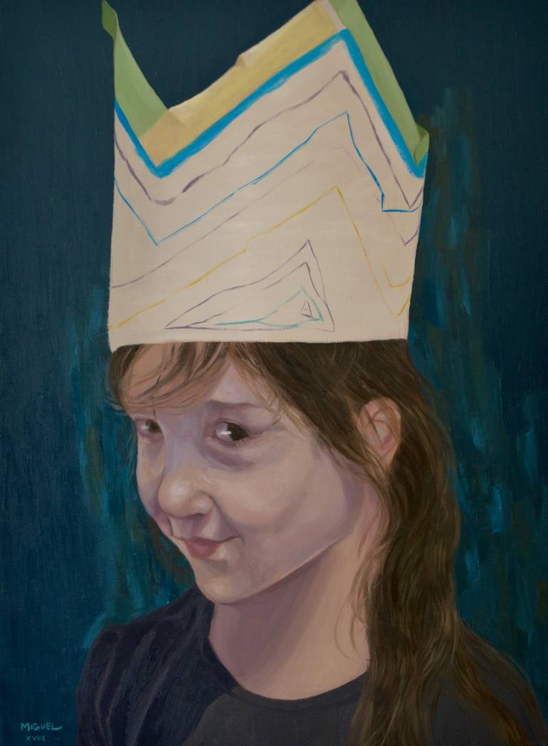 Portrait de ma fille Paloma avec sa couronne de papier.