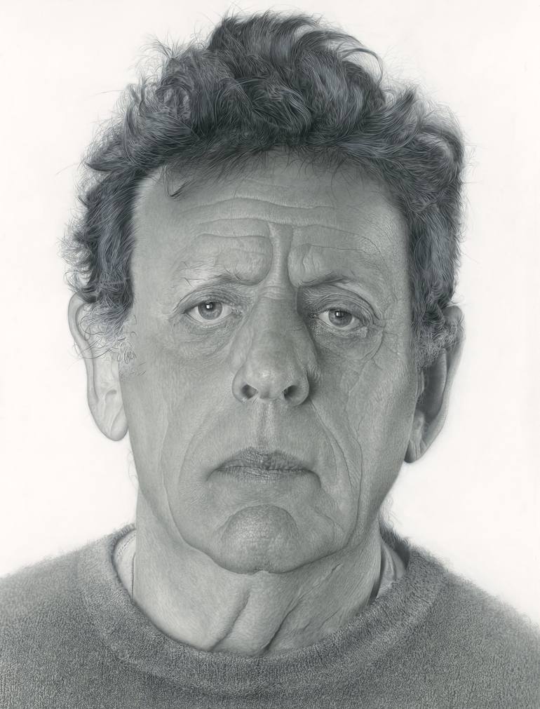 This portrait of composer, musician and conductor Philip Glass was selected for the BP Portrait Award in 2013. The BP Portrait Awards are the Olympics of portrait painting, organised by the National Gallery in London.Philip Glass posed for this portrait during a music festival in Middelburg. The pai...