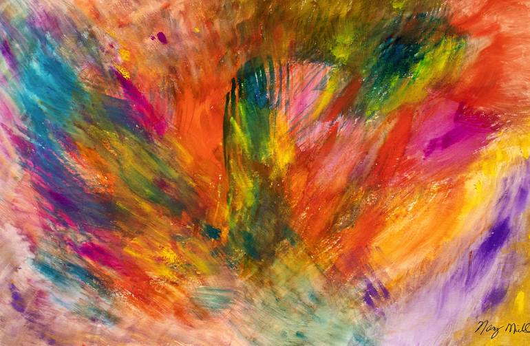 Once again, I was led to paint "energetically." As always happens when I paint, my hand moves very quickly and I do not "see" what I've painted. To my surprise, right in the middle of this painting appeared a Phoenix. Yes, the symbol of transformation. And so it is.